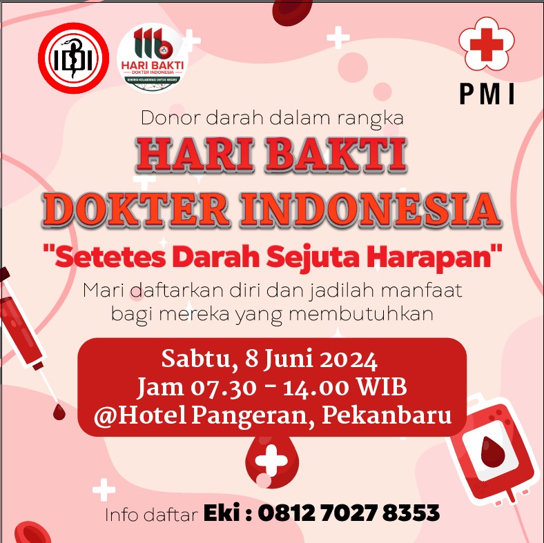 Untuk info lebih lanjut bisa menghubungi Sekretariat IDI Wilayah Riau :