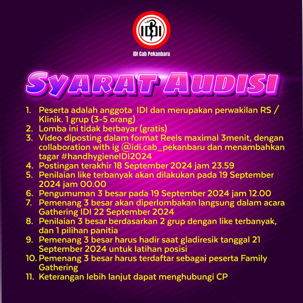 Cukup posting video dance Hand Hygiene di IG dan tag @idi.cab_pekanbaru (detail ada pada gambar)