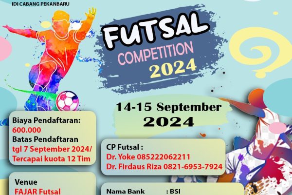 🏅 Dalam rangka merayakan HUT IDI ke-74, FORKES IDI CAB. PEKANBARU mengadakan Futsal Competition(Khusus Dokter) ⚽⚽⚽ 🏷️ Waktu : Sabtu-Minggu, 14 – 15 September 2024📌 Venue : Fajar Futsal 📚 Batas Pendaftaran : Sabtu, 7 September 2024 💰Biaya Pendaftaran: Rp. 600.000,- Ayo daftarkan tim anda sekarang juga dan jadilah juara! 💪🏻 #SATUIDITERUSMAJU CP :Dr. Yoke…